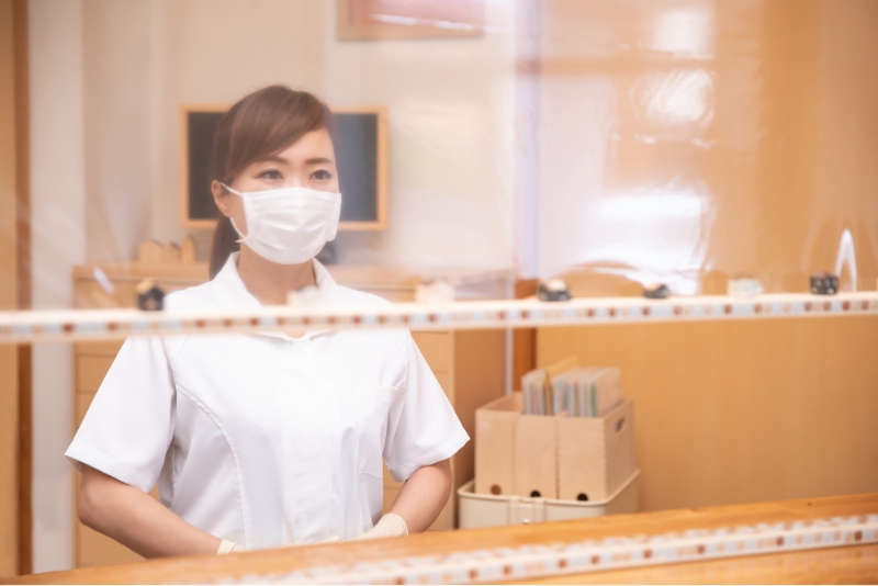 感染症予防のために、当院のスタッフはマスクの着用や手洗い、アルコール消毒などを徹底しています。また、毎朝体温を測定して、発熱している人員は勤務しない決まりも定めています。
